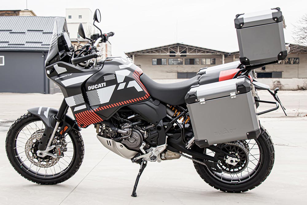 Ducati DesertX PRODUCT GALLERIES Ducati DesertX Hard Pannier Gallery Ducati DesertX Xtremade Soft Pannier Gallery Ducati DesertX Pannier Rack & Accessories